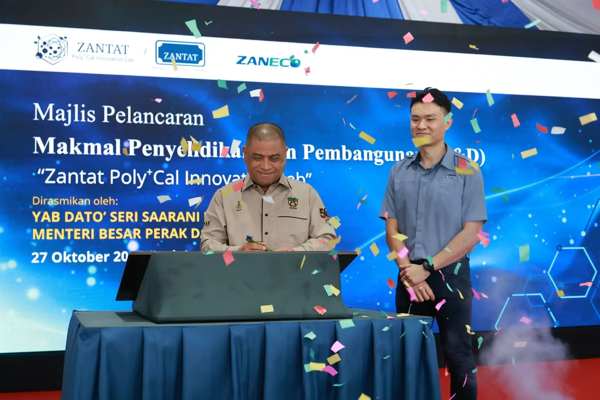 Launched with a total investment of RM8 million, the Zantat Poly⁺Cal Innovation Lab is the first-of-its-kind R&D hub in Malaysia’s calcium carbonate sector. The facility strengthens Zantat’s mission to position calcium carbonate as a green, value-added material, while aligning with national and global sustainability goals such as NIMP 2030 and Perak Sejahtera 2030.